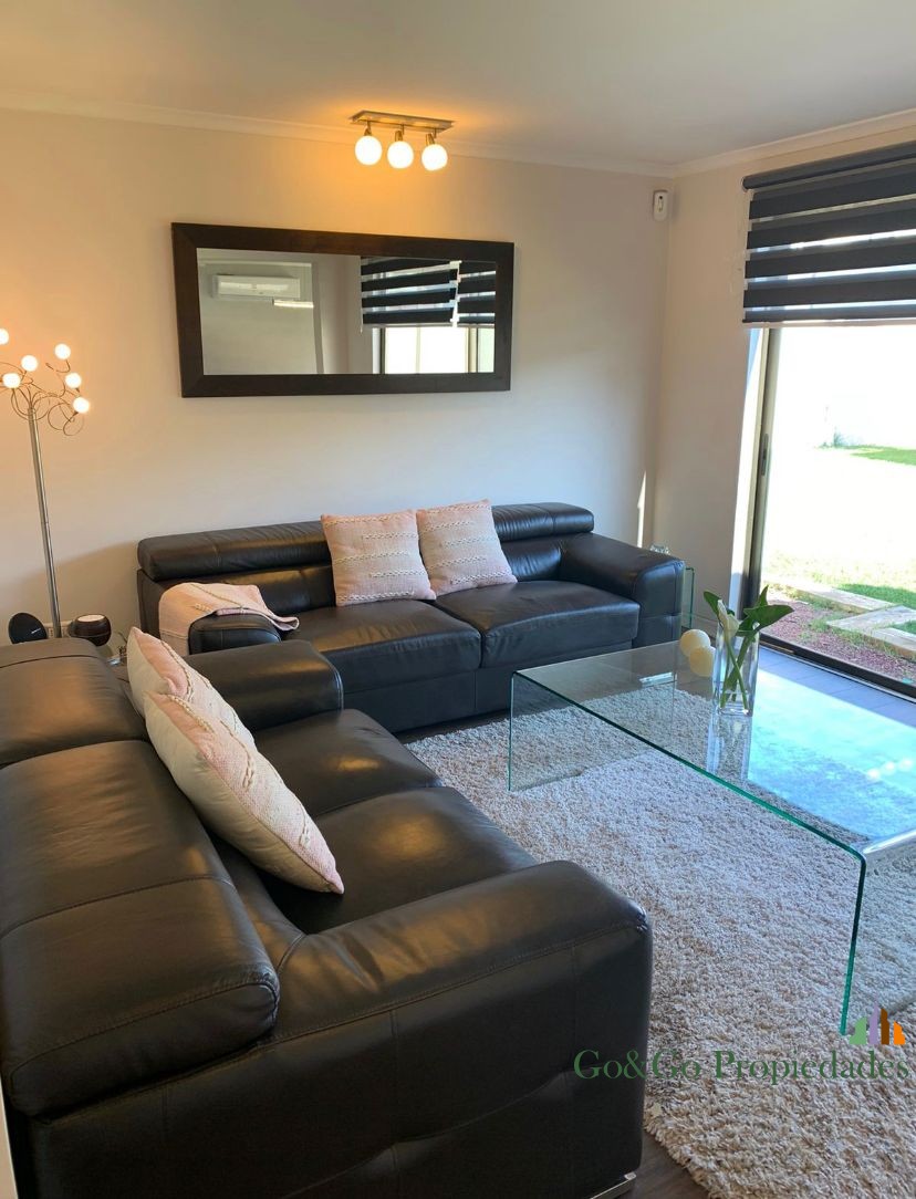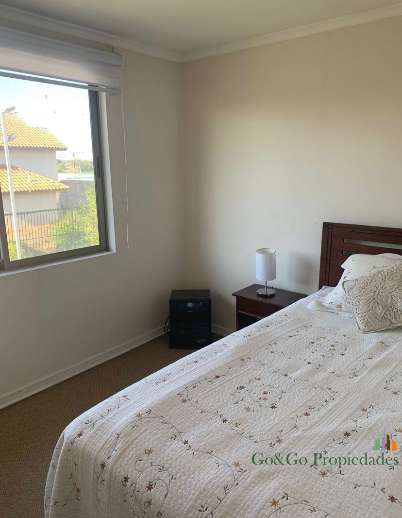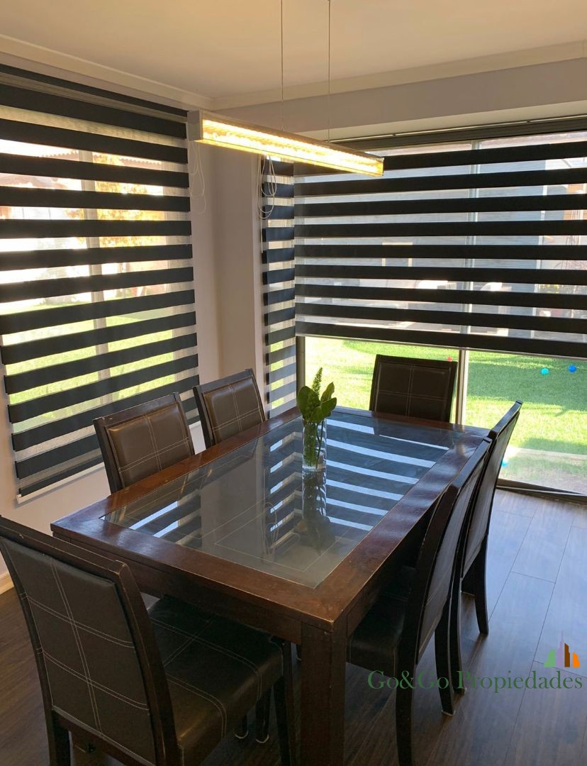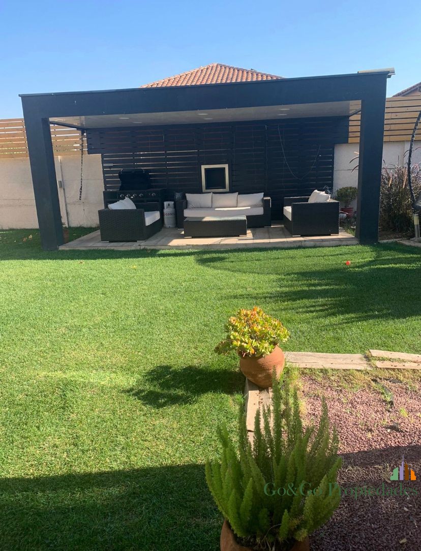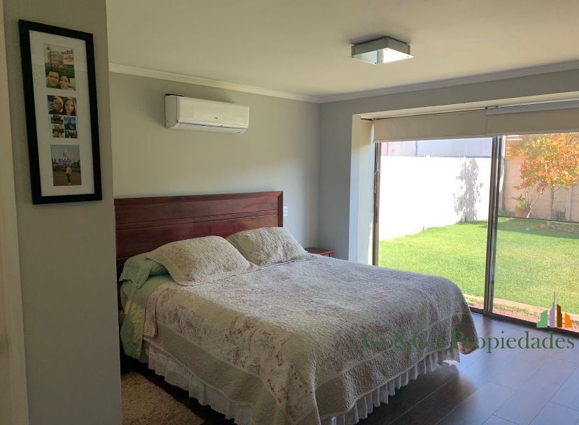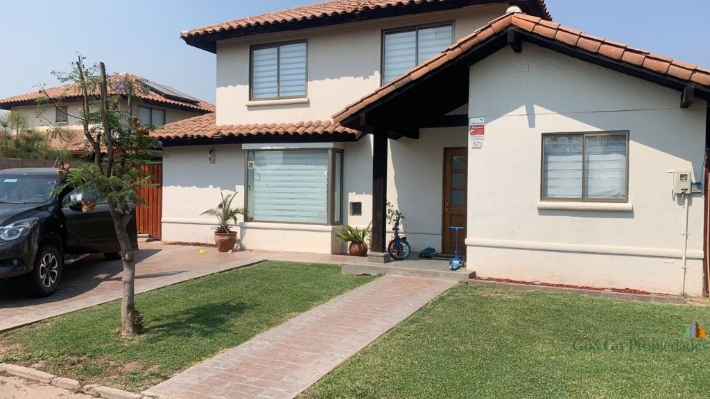Casa emplazada en el mejor sector de la comuna de Padre Hurtado. El condominio Laguna del Sol es un espectacular proyecto que cuenta una laguna de agua cristalina navegable, áreas verdes, estacionamientos de visitas, sala multiuso, club house, juegos infantiles, 2 multicanchas, senderos de paseo alrededor de la laguna, acceso contralado las 24 hrs, servicio de seguridad, entre otras prestaciones que te sorprenderán y harán de este hermoso lugar el mejor opción para vivir en familia. La casa del tipo arquitectónico “chilena” con vista despejada a la laguna. Cuenta con una moderna y funcional distribución interior con la que podrás disfrutar de amplios e iluminados espacios. Distribución planta primer piso – Hall de acceso – Living comedor con piso flotante y acondicionado – Baño visitas – Cocina con gran espacio de almacenaje, artefactos empotrados, cubierta de granito, conexión a lavavajillas y piso de porcelanato – Dormitorio principal en suite, con acceso a amplio baño y walk in closet – Dormitorio de servicio con acceso a baño privado – Dormitorio con closet – Baño Distribución planta segundo piso – Baño completo con tina – 2 dormitorios de igual tamaño ambos con closte completo Antejardín y acceso principal – Estacionamiento para 2 vehículos – Acceso peatonal con piso de hormigón estampado tipo adoquín – Riego automático Patio trasero – Terraza con cielo de pvc y piso de Mármol – Riego automático – Hermoso jardín con pasto natural y paisajismo Otras especificaciones Técnicas – Todas las ventanas en termo panel. – Ablandador y purificador de agua – Chimenea a etanol para exterior – Logia con conexión a lavadora y 2 calefont