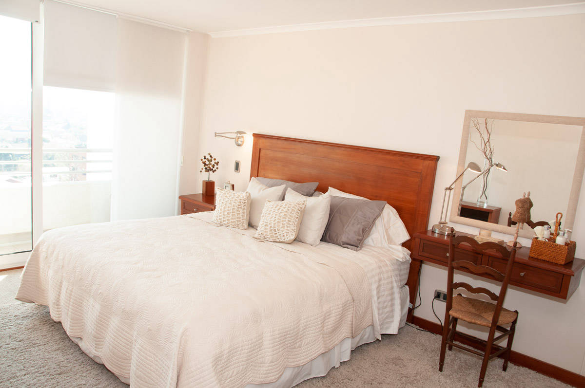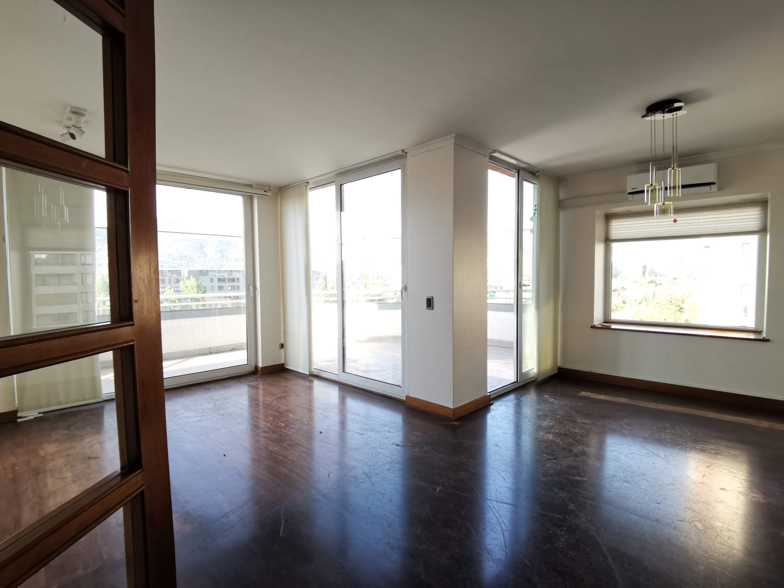 Amplio y luminoso departamento tipo duplex emplazado excelente sector con gran conectividad de Avenida Presidente Kennedy. El departamento (piso 8) cuenta con amplia terraza donde se puede disfrutar una hermosa vista despejada hacia Avenida Presidente Kennedy y cordillera de los Andes. Cuenta con aire acondicionado en living comedor y habitaciones, amplia logia, habitación y baño de servicio, sala de home office, puerta de seguridad y acceso exclusivo con ascensor a la puerta. Distribución: – Primer piso: Living comedor con acceso a amplia terraza de 13m², habitación matrimonial de 18m² con walking closet y baño con tina hidromasaje. Cocina completamente equipada, encimeras de granito, hornos y quemadores eléctricos, lavavajillas empotrado. Logia con repisas, conexión a lavadora y secadora. Habitación de servicio con baño. – Segundo piso: Gran dormitorio principal en suite de 25m² con walking closet, 2 habitaciones de 13m² cada una y funcional sala home office. – Amplia bodega con repisas que permiten gran cantidad de almacenamiento. Características del Edificio: – Edificio de 20 pisos, 117 departamentos. – Gimnasio equipado – Central térmica de calefacción por radiador y agua caliente con medidor independiente. – Acceso para discapacitados. – Sistema de seguridad equipado con circuito cerrado de televisión y alarmas con monitoreo en todos los departamentos. – Sala de juegos con mesa de pool y ping pong – Piscina panorámica climatizada en el último y 2 piscinas en primer piso con amplios jardines – Sala de sauna Excelente oportunidad de inversión, a pasos de la futura estación del Metro Línea 7 que se construirá en Gerónimo de Alderete – (Para consultas puedes escribirnos en el formulario de contacto).